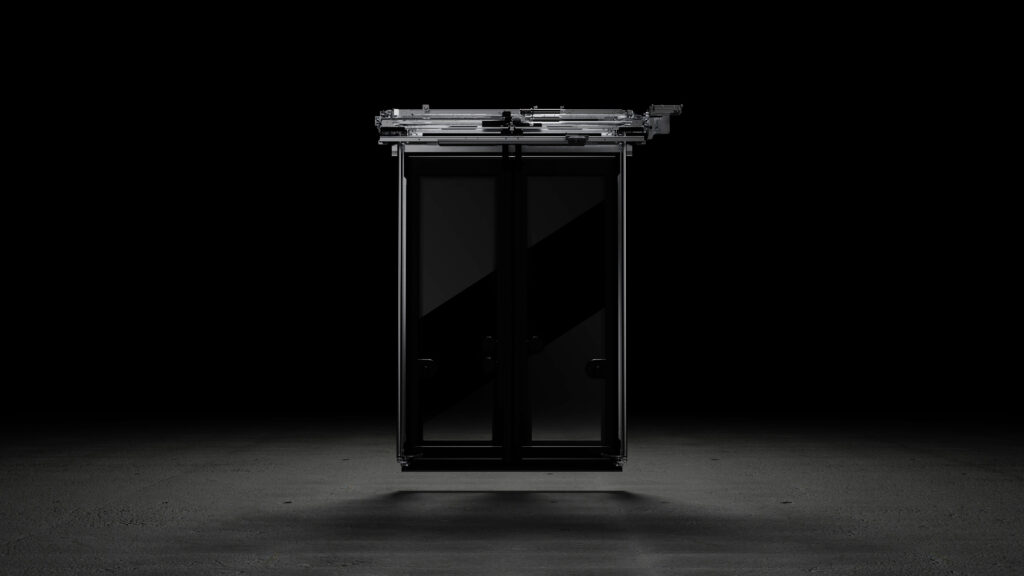 The system is available in both the electrical and pneumatic version with a double door leaf. Height, width and other features can be customized according to your wishes.