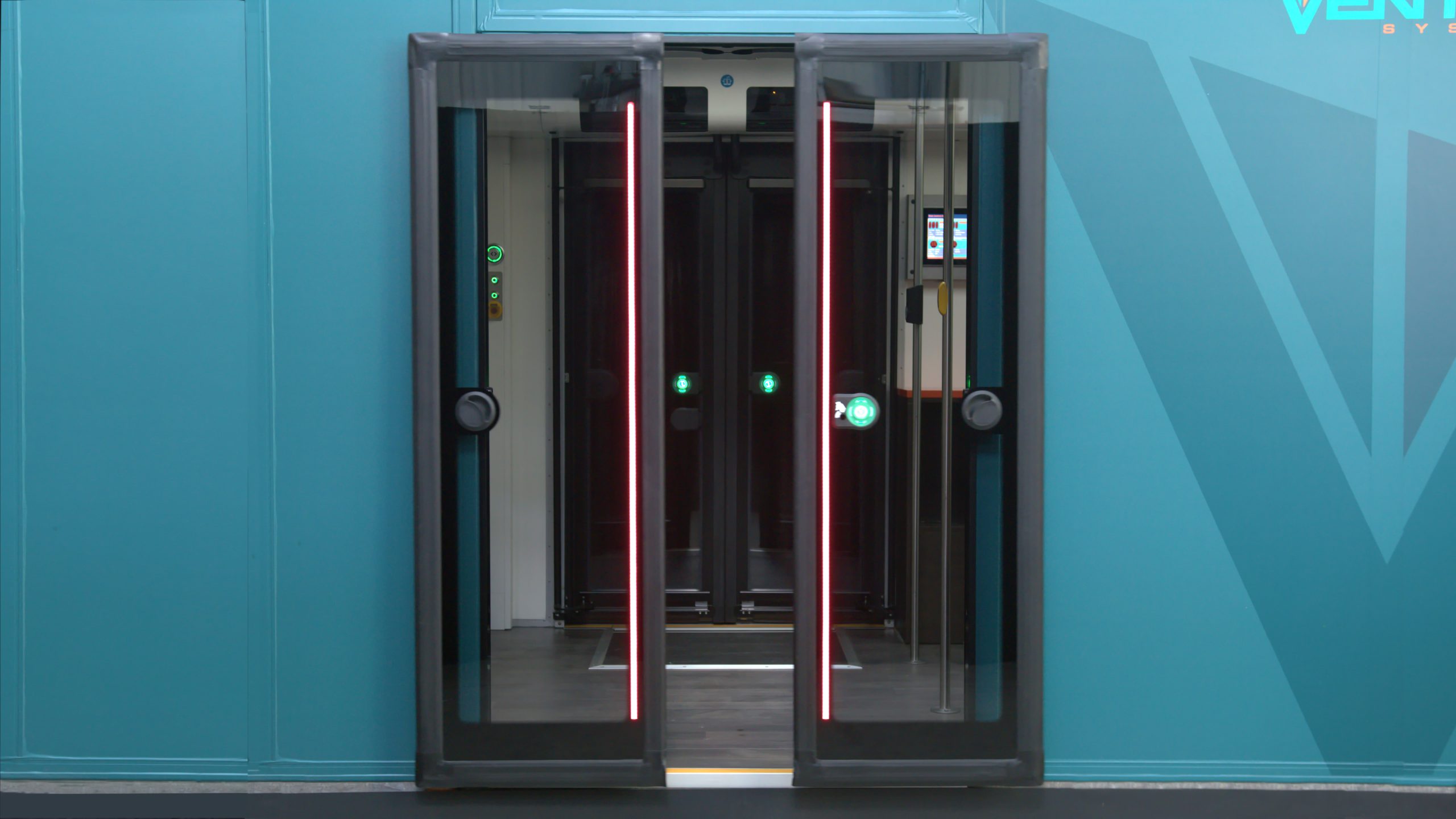 A unique feature of the door systems is the use of our LED passenger communication system. The LED strip integrated into the leading edge is visible on the outside of the door leaf and communicates the operating status of the door. It lights up green when it is safe to enter and (flashes) red when passengers should not enter the doors. This clear communication prevents passenger obstruction and improves safety.